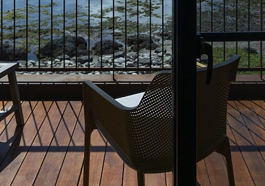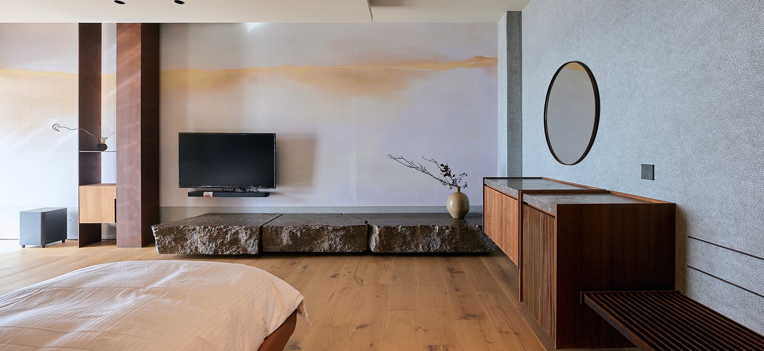 別緻精選雙大床,質樸石牆渲染彩意,沉穩大理石光亮桌面擺放瓶飾,陽光灑落,與旅伴共享光影海藍交錯的繽紛景致。